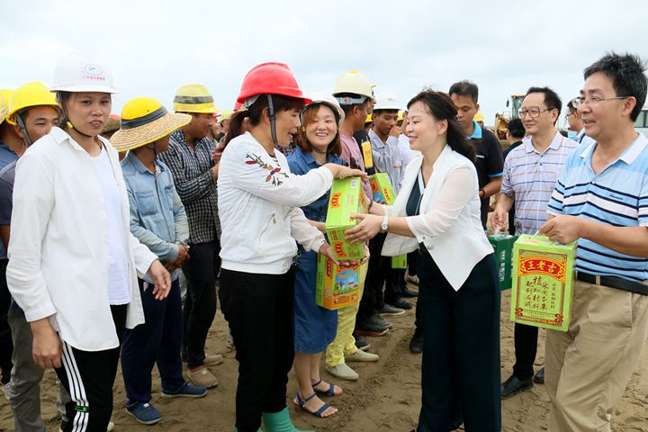 8月13日下午,市人大常委會副主任、市總工會主席黃奕奕率市總工會工作人員走進茂名港集團項目建設工地,開展“關愛職工 夏送清涼”活動,為一線職工送上王老吉、菊花茶、冰糖雪梨等清涼降暑物資。茂名港集團黨委書記、董事長劉乃英,集團黨委副書記、工會主席肖炳璋陪同慰問。