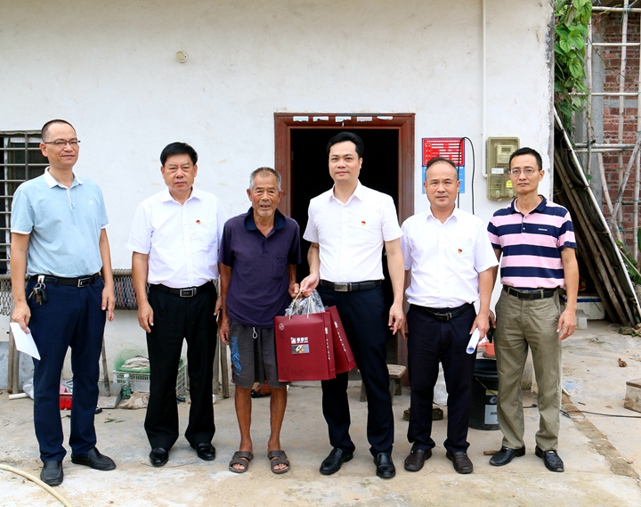中秋、國慶節(jié)來臨之際,為讓貧困戶能度過一個(gè)歡樂祥和的節(jié)日,集團(tuán)黨委書記、董事長劉乃英,黨委副書記肖炳璋分別率領(lǐng)集團(tuán)一對一幫扶責(zé)任人到博賀鎮(zhèn)博賀村與電城鎮(zhèn)架炮村,以入村入戶的方式開展中秋國慶走訪慰問活動,為博賀村62戶扶貧對象和架炮村8名困難黨員送上節(jié)日的祝福和慰問品。