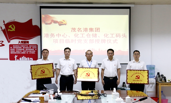 5月12日下午,在博賀新港區(qū)項(xiàng)目會(huì)議室,茂名港集團(tuán)組織舉行了簡單而莊嚴(yán)的項(xiàng)目臨時(shí)黨支部授牌儀式,為茂名港務(wù)中心、東區(qū)化工碼頭和東區(qū)化工倉儲(chǔ)三個(gè)項(xiàng)目臨時(shí)黨支部授予牌匾。集團(tuán)黨委副書記、工會(huì)主席肖炳璋,集團(tuán)黨委委員、副總裁楊超燦,黨群工作部、項(xiàng)目部黨員代表和施工單位及監(jiān)理單位代表共40多人參加了授牌儀式。