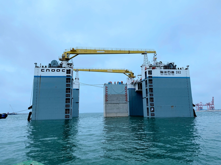6月1日晚上8時,博賀新港區(qū)項目建設(shè)傳來喜訊——茂名港博賀新港區(qū)東區(qū)化工碼頭項目第一個沉箱順利安裝完成!