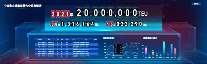 根據(jù)寧波舟山港集裝箱實時生產(chǎn)數(shù)據(jù)顯示,8月15日8時55分,寧波舟山港今年集裝箱吞吐量達2000萬標(biāo)準(zhǔn)箱,較去年突破“2000萬”提前1個月。