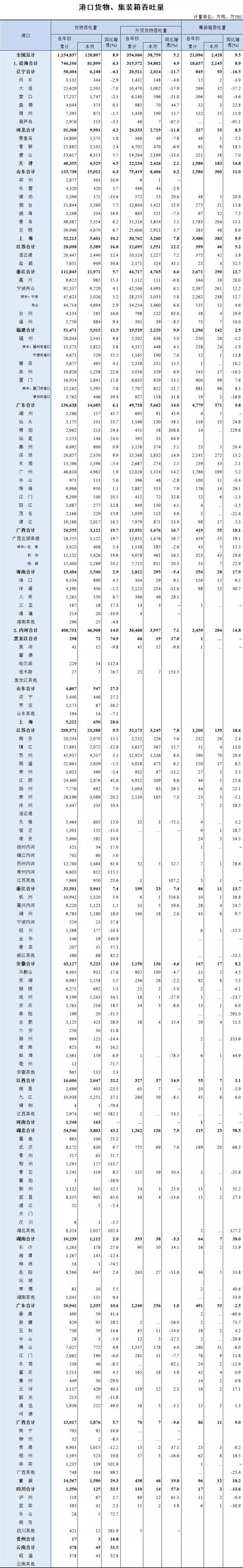 根據(jù)交通運輸部數(shù)據(jù),1-9月,全國港口完成貨物吞吐量115.48億噸,同比增長8.9%;完成集裝箱吞吐量2.11億TEU,同比增長9.5%。其中,沿海港口完成貨物吞吐量74.6億噸,同比增長6.3%;完成集裝箱吞吐量1.86億TEU,同比增長8.9%。 9月份,兩大榜單排名未見變化,只是增速進一步放緩,集裝箱吞吐量方面東莞港已與去年持平,福州港吞吐量增速轉(zhuǎn)為負數(shù),不過從總體來看,集裝箱吞吐量與貨物吞吐量的增速降幅不大,已進入平穩(wěn)增長區(qū)間。從海關(guān)數(shù)據(jù)來看,9月份當(dāng)月進出口同比增長15.4%,增速較8月份回落了3.5個百分點。 港口圈認為,這不意味著港口總體向好的發(fā)展趨勢就此打住,9月份,臺風(fēng)對長三角、東南沿海、珠三角各大港口生產(chǎn)運輸都有影響,限電也波及各制造業(yè)大省,可能導(dǎo)致出口貨物減少。但這些因素的陰霾不會持續(xù)太久,在國家力保煤電供應(yīng)的政策下,第四季度港口生產(chǎn)數(shù)據(jù)仍將保持相對穩(wěn)定的增長。 附交通運輸部完整數(shù)據(jù):