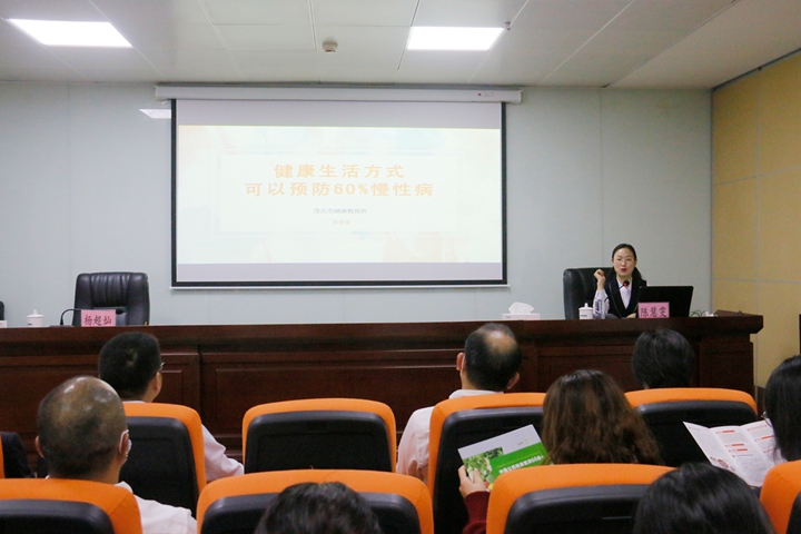 為踐行習(xí)近平總書記關(guān)于健康中國(guó)的重要論述,根據(jù)市衛(wèi)生健康局通知精神,結(jié)合集團(tuán)職工健康文化月活動(dòng)安排,12月16日,集團(tuán)工會(huì)邀請(qǐng)茂名市健康教育所副所長(zhǎng)陳慧雯到集團(tuán)開展“好心茂名,健康大課堂”健康科普講座。集團(tuán)黨委委員、副總裁、工會(huì)主席楊超燦,集團(tuán)機(jī)關(guān)各部室、下屬企業(yè)共60余名干部職工參加了講座。