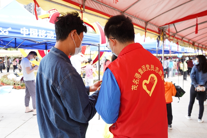 3月27日,為保障群眾核酸采樣秩序正常,根據(jù)上級安排,集團黨委組織黨員志愿服務(wù)隊火速前往南香公園采樣點支援全員核酸檢測工作,讓黨旗在防控疫情斗爭第一線高高飄揚。 集團黨員志愿者們按計劃時間提前一小時到采樣點,向醫(yī)務(wù)人員虛心學(xué)習(xí),了解檢測服務(wù)工作中最常見的問題及解決方法,確保能夠為現(xiàn)場群眾提供最迅速準(zhǔn)確的志愿服務(wù)。采樣開始后,集團黨員志愿服務(wù)隊隊員們奔走忙碌于人流中,有序地疏導(dǎo)人流、維護秩序,督促廣大群眾遵守公共場所戴口罩、不聚集、保持1米線等規(guī)定。服務(wù)中,志愿者們?yōu)槿罕姶鹨山饣蟆⑾檻]、安撫緊張情緒,并指引和幫助群眾們打開核酸檢測小程序做好信息錄入等工作。