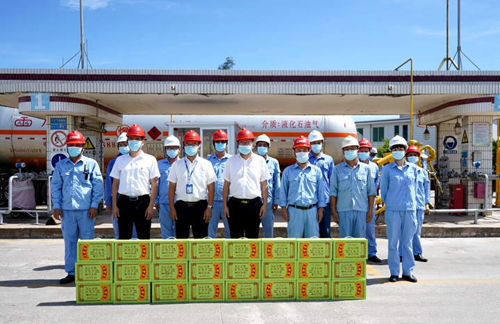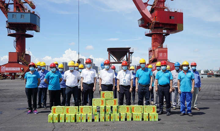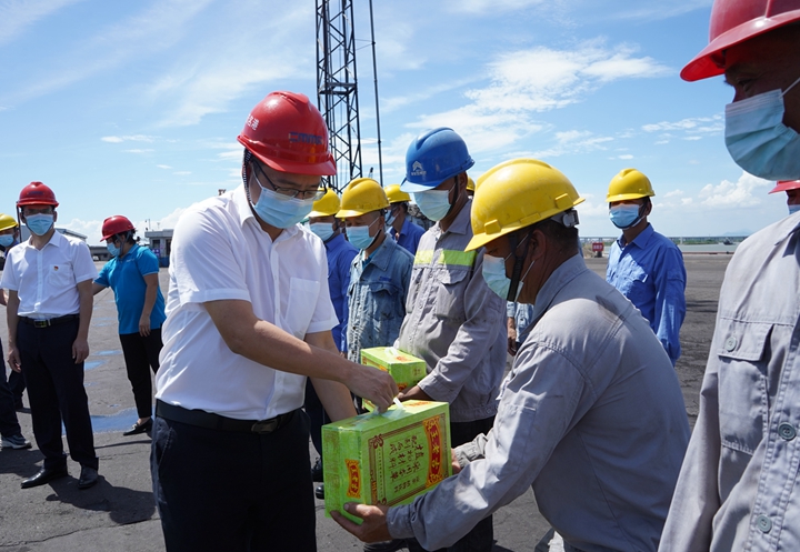 7月14日,集團(tuán)黨委委員、副總裁、工會(huì)主席楊超燦率隊(duì)到集團(tuán)下屬港口經(jīng)營公司碼頭作業(yè)現(xiàn)場、中油王港公司庫區(qū)、博賀新港區(qū)重點(diǎn)項(xiàng)目施工現(xiàn)場等處“送清涼”,為奮戰(zhàn)一線的職工發(fā)放防暑降溫飲品、用品。