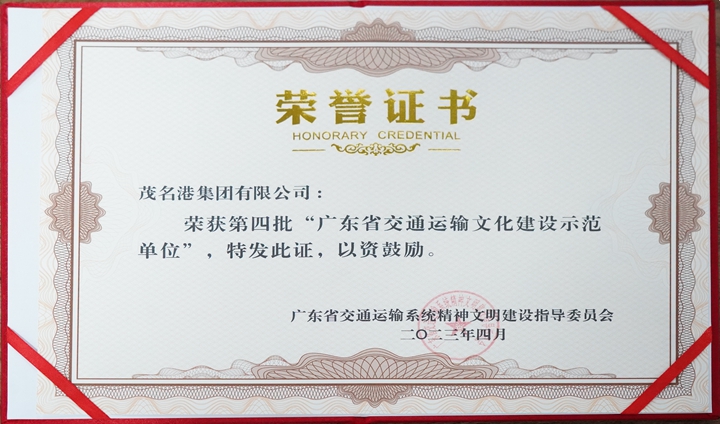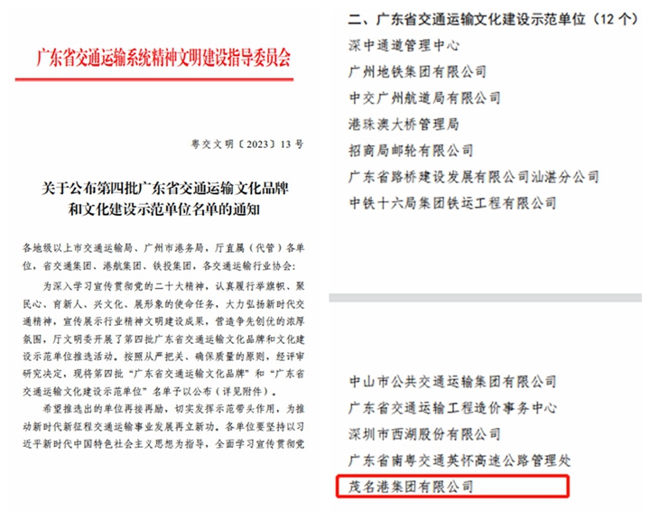 日前,廣東省交通運(yùn)輸系統(tǒng)精神文明建設(shè)指導(dǎo)委員會公布了第四批廣東省交通運(yùn)輸文化品牌和文化建設(shè)示范單位名單,茂名港集團(tuán)被評為“廣東省交通運(yùn)輸文化建設(shè)示范單位”。