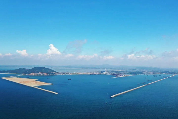 從灘涂到深水港,從藍(lán)圖到實(shí)景圖。路選對(duì)了,就不怕遙遠(yuǎn)。 2013年,隨著東閣嶺第一炮的炸響,東西兩條防波堤像巨臂一樣向海中延伸,圈出了茂名港人億噸大港的夢想。這一路,從零到有,從卡脖子到攻堅(jiān)突圍,再到不斷刷新成績,一路艱難險(xiǎn)阻,卻又步履堅(jiān)定! 挺難的,從一無所有中起步,大家都是咬著牙砥礪向前的!绷鹤驷摶貞泟?cè)肼殨r(shí)在港區(qū)看到的畫面,退潮時(shí)都是灘涂爛泥,漲潮時(shí)便是一片淺海,要把漁民拉上腰的護(hù)服穿在身上才港下地勘測,以免一漲潮就成了“落湯雞”。在防波堤項(xiàng)目建設(shè)的過程中,梁祖釗發(fā)現(xiàn)港區(qū)起步施工基礎(chǔ)差,東閣嶺開山爆破難度大、所需拋石量巨大、工期緊實(shí)施人員少等種種困難,基本沒有可參考借鑒的港口建設(shè)管理經(jīng)驗(yàn)。實(shí)施人員少,那就一崗多責(zé),一個(gè)人分擔(dān)多個(gè)角色輪回轉(zhuǎn)軸;沒經(jīng)驗(yàn),那就摸著石頭過河,參考國家港口工程建設(shè)管理規(guī)定,一項(xiàng)一項(xiàng)按照最高要求制定施工計(jì)劃,系統(tǒng)部署、優(yōu)化調(diào)度東西防波堤各種有利資源,最大限度增加?xùn)|西防波堤的作業(yè)面和水拋力度,使防波堤日均水拋量從8000立方米提升至16000立方米,大大加快了施工進(jìn)展。他深耕項(xiàng)目建設(shè)一線,在集團(tuán)黨委的帶領(lǐng)下全過程參與完成項(xiàng)目設(shè)計(jì)方案審核、招投標(biāo)、合同談判、施工建設(shè)、交工驗(yàn)收等工作。終于,在2018年7月,外圍全長5423米東防波堤和全長3315米的西防波堤順利交工驗(yàn)收,兩堤如同巨臂環(huán)繞形成環(huán)抱式港池面積6平方公里,為茂名實(shí)現(xiàn)“億噸大港夢”奠定了堅(jiān)實(shí)的基礎(chǔ),有力地助推茂名經(jīng)濟(jì)高質(zhì)量發(fā)展。