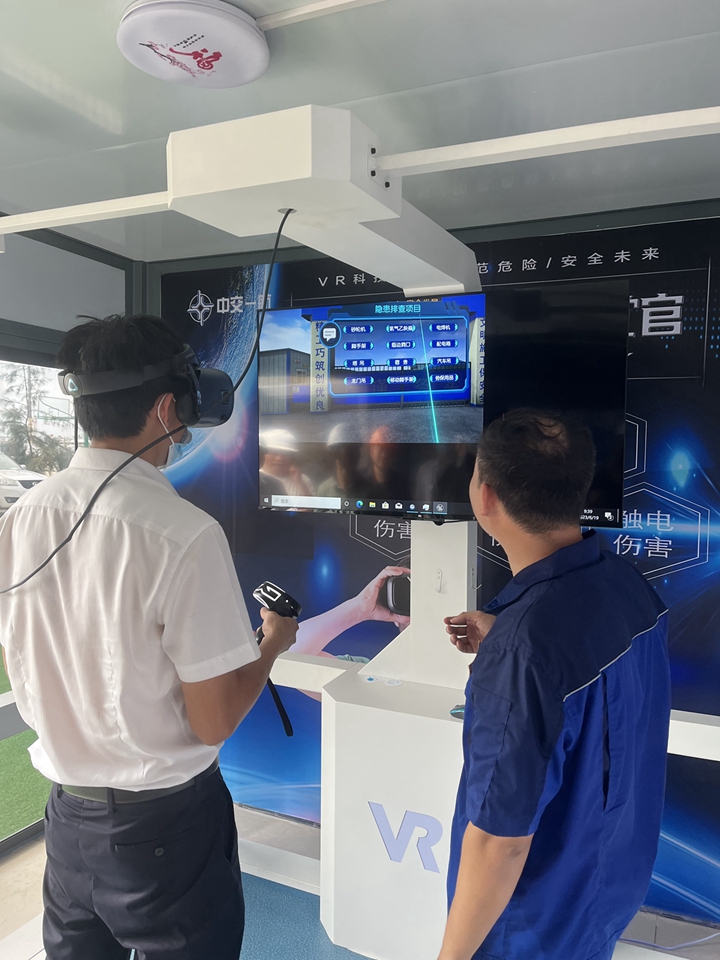 集團(tuán)組織長(zhǎng)興石化公司、開發(fā)建設(shè)公司、濱海控股公司、濱海物業(yè)公司等職工體驗(yàn)安全館,通過佩戴VR、感受物體打擊、接觸電擊等“親密接觸”,讓大家身臨其境感受違規(guī)操作帶來的后果,通過理論和“實(shí)踐”不斷增強(qiáng)員工安全意識(shí)。