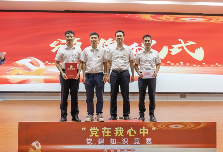 機(jī)關(guān)先鋒隊(duì)、物業(yè)勇闖隊(duì)、港口沖鋒隊(duì)、王港挑戰(zhàn)隊(duì)榮獲優(yōu)秀獎 在陣陣掌聲中,集團(tuán)領(lǐng)導(dǎo)為獲獎隊(duì)伍頒發(fā)了榮譽(yù)證書并進(jìn)行合影留念。 整場競賽精彩紛呈,氣氛熱烈,選手之間通力合作,場上比分你追我趕,大家“賽”出了水平,“競”出了風(fēng)采,充分體現(xiàn)了茂名港人積極奮進(jìn),努力拼搏的精神。集團(tuán)黨員干部以此為契機(jī),養(yǎng)成自學(xué)、好學(xué)的習(xí)慣,持之以恒、與時俱進(jìn)的學(xué)習(xí),避免知識老化、思想僵化、能力退化,在各自的崗位上掌握新方法、增長新才干、解決新問題,把習(xí)近平新時代中國特色社會主義思想轉(zhuǎn)化為堅(jiān)定理想、錘煉黨性和指導(dǎo)實(shí)踐、推動工作的強(qiáng)大力量,營造了全集團(tuán)風(fēng)清氣正、積極向上、斗志昂揚(yáng)的干事氛圍。