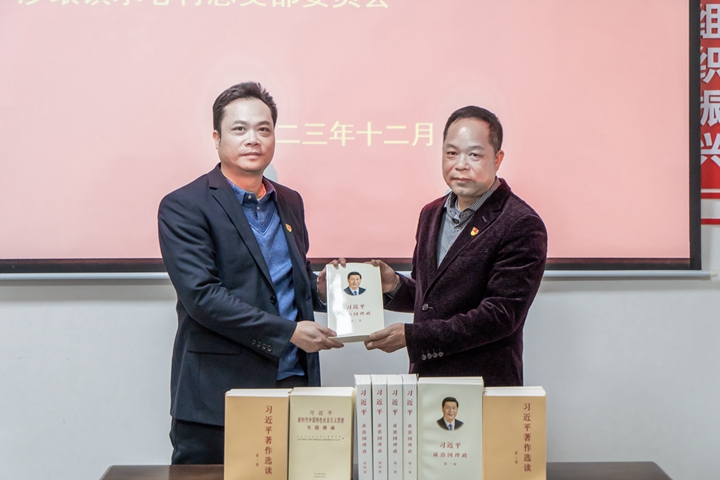 隨后,肖炳璋一行來到沙瑯鎮(zhèn)水心村進行實地調(diào)研。鎮(zhèn)委副書記賴水寅表示,在茂名港集團的極力幫扶下,水心村的黨員干部發(fā)揮帶頭作用,全村上下一心,在產(chǎn)業(yè)興農(nóng)的項目上取得巨大的成效。肖炳璋表示,集團高度重視沙瑯鎮(zhèn)的幫扶項目,并對鎮(zhèn)領導、駐鎮(zhèn)工作隊成員所取得的工作成效表示祝賀,茂名港集團將繼續(xù)予以大力支持,也希望駐鎮(zhèn)干部把鄉(xiāng)村振興工作做好做細。同時,為了讓水心村精神文化水平能與項目建設同步高質(zhì)量發(fā)展,座談會結束后在黨建活動室舉行贈書儀式。