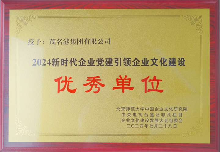 會上,茂名港集團(tuán)獲得“2024新時代企業(yè)黨建引領(lǐng)企業(yè)文化建設(shè)優(yōu)秀單位”,集團(tuán)黨委書記、董事長王志華榮獲“2024新時代企業(yè)黨建引領(lǐng)企業(yè)文化建設(shè)先進(jìn)個人”稱號。