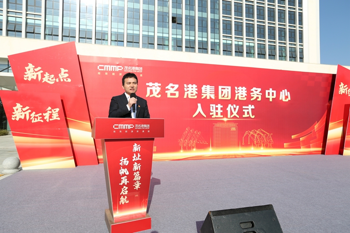 王志華致辭中表示茂名港集團(tuán)作為茂名港博賀新港區(qū)的建設(shè)和運(yùn)營主體,一直以來都想把“家”安在港口,安在這片茂名港人揮灑汗水、奉獻(xiàn)青春的熱土上。此次集團(tuán)搬遷入駐港務(wù)中心,不僅是對集團(tuán)辦公環(huán)境的一次重大升級,更是我們在“向海而興、向海圖強(qiáng)”發(fā)展道路上的重要一步。他表示,未來茂名港集團(tuán)將利用好港務(wù)中心的現(xiàn)代化辦公條件和臨港地理優(yōu)勢,進(jìn)一步加強(qiáng)港口建設(shè)和運(yùn)營管理,為助推茂名產(chǎn)業(yè)發(fā)展提供重要的港口物流支撐,共同譜寫茂名港建設(shè)發(fā)展的新篇章!