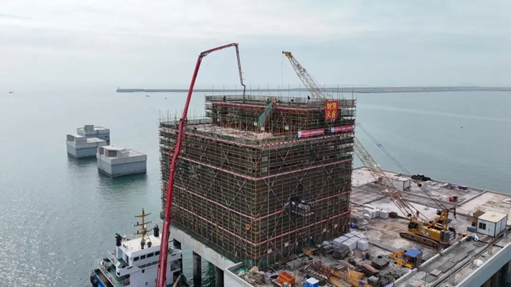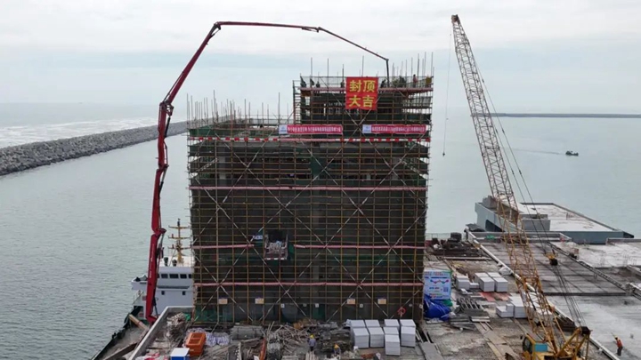 12月25日,隨著最后一方混凝土在工作樓頂層澆筑成型,茂名港博賀新港區(qū)30萬噸級原油碼頭工程工作樓順利封頂。從項(xiàng)目藍(lán)圖到喜封金頂,不僅標(biāo)志著項(xiàng)目取得了重要的階段性勝利,也是30萬噸級原油碼頭項(xiàng)目臨時黨支部在2024年取得的又一勝利戰(zhàn)果。