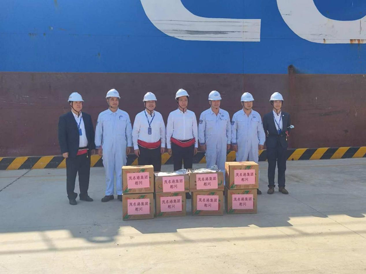 中遠(yuǎn)海運(yùn)能源公司副總經(jīng)理秦炯、中遠(yuǎn)海運(yùn)能源公司油輪事業(yè)部副總經(jīng)理陳俊偉等一行在茂名港集團(tuán)副總裁李昱祺的陪同下,來(lái)到?吭诿奂瘓F(tuán)東區(qū)化工碼頭E12泊位的“遵義潭”油輪上慰問(wèn)船員,中遠(yuǎn)海運(yùn)能源公司廣州中心副總經(jīng)理施偉民與茂名港集團(tuán)商務(wù)部負(fù)責(zé)人等陪同慰問(wèn)。