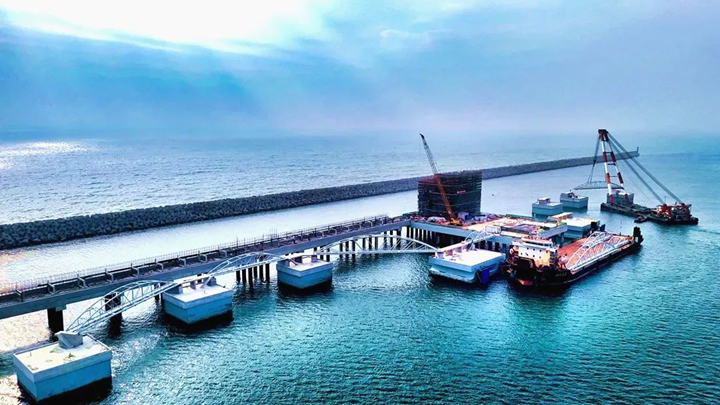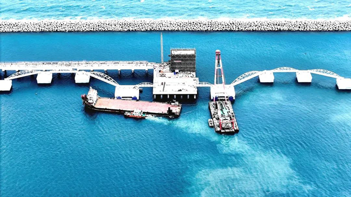 在新年伊始的奮進號角中,茂名港30萬噸級原油碼頭工程于2月23日全面完成了鋼聯(lián)橋安裝施工,標志著項目建設完成關(guān)鍵新節(jié)點。這一重要突破為30萬噸級原油碼頭工程新年開好局、起好步奠定了堅實基礎,也為加快項目建設,保障工程如期竣工注入了強勁動力。