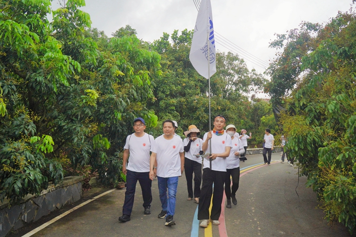 活動當(dāng)天,集團(tuán)員工們身著統(tǒng)一服裝,精神飽滿地參與了全程2公里的文化徒步。沿途,大家熱情投入到彩虹跑、古荔打卡等12項特色活動中。在古荔園內(nèi),員工們重點參觀了七棵千年古荔樹,并積極參與收集以"五世同堂"等古荔樹為原型的定制文創(chuàng)印章。