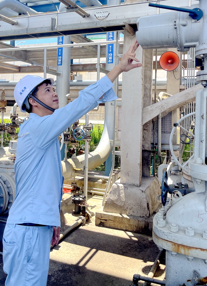 2024年是碼頭和庫區(qū)的重要歷史節(jié)點,何雄勝同志以“全天候”“無休息”的戰(zhàn)斗姿態(tài)沖鋒在前。油氣回收系統(tǒng)投用前,他連續(xù)堅守崗位,精準(zhǔn)指導(dǎo)水沖洗、吹掃、氣密等關(guān)鍵工序,細致核查涉及液氮深冷工序等危險工藝的300余個法蘭點!把b置運行不容疏忽,必須把安全放在首位!”這是他堅守的信念。正是這份黨員的極致嚴謹,確保了裝置一次性成功聯(lián)調(diào),運行指標(biāo)符合設(shè)計規(guī)范。他還指導(dǎo)用分析儀等設(shè)備精確測試不同工況能耗,為節(jié)能降耗打下了堅實基礎(chǔ)。面對首次卸船、裝船、茂石化長輸管線進罐等多項艱巨任務(wù)的圓滿完成,油污滿面也難掩他臉上的欣慰:“這就是黨員應(yīng)有的‘進度條’!”
