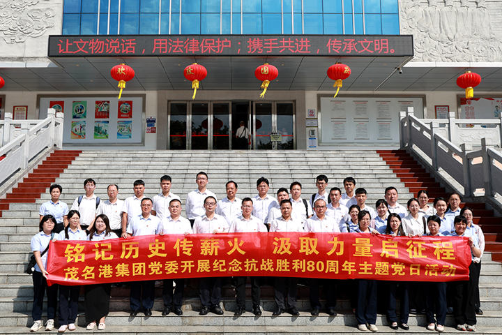 為紀(jì)念中國人民抗日戰(zhàn)爭暨世界反法西斯戰(zhàn)爭勝利80周年,緬懷革命先烈、銘記歷史榮光,大力弘揚(yáng)偉大抗戰(zhàn)精神,近日,茂名港集團(tuán)黨委組織40余名黨員干部職工,開展“銘記歷史傳薪火 汲取力量啟征程”主題黨日活動,引導(dǎo)黨員筑牢信仰之基,凝聚奮進(jìn)力量。集團(tuán)黨委委員、紀(jì)委書記、監(jiān)察專員周文良,黨委委員、副總裁周成參加活動。